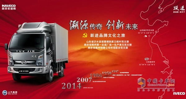 2014年10月25日,南京依維柯組織開展了“溯源傳奇,創(chuàng)新未來—躍進品牌文化之旅”活動,在尋找精神之源、品牌之源、革命之源的過程中,銘記歷史,創(chuàng)新未來。
