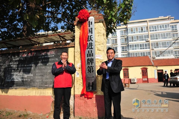 南京依維柯躍進品牌總監(jiān)張陵與山東省臨沂市沂水縣人民政府王副縣長為“中國躍進品牌第一村”揭幕
